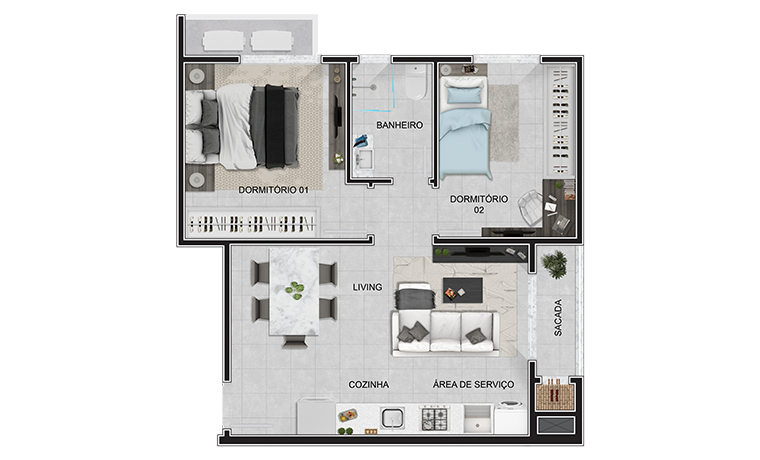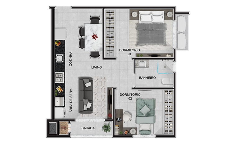 • 02Dormitórios por apto.